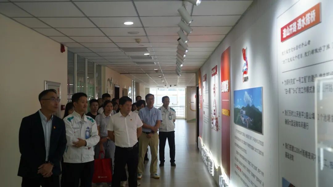 在基地党建活动厅,张文青一行参观了“红擎致净”环境教育党建基地,听取了党员在二期项目攻坚与环境应急保障中的先进事迹,对基地在广汽商贸“红擎驱动·光耀征程”党建品牌引领下荣获广州国企十佳党建基地表示赞赏。